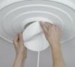 CableCup always sits perfectly on the ceiling. The soft material of CableCup adapts itself to the hook length.